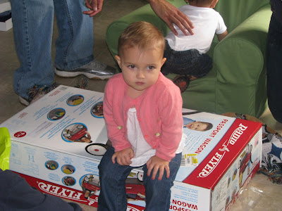 Another picture I had to post is this one! Tucker got so many gifts that Tatum decided he wouldn't miss his Radio Flyer red wagon so she staked her claim!